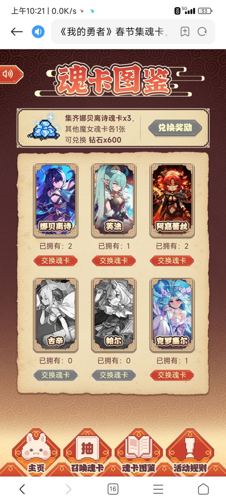 《我的勇者》春节集魂卡,娜贝离诗给你送钻石!我想用古辛魂卡与你交换芙法魂卡,https://www.r2games.com.cn/act/card2023/9303333701?exchangeToken=BMFEPVyccOKrfBilPbjN