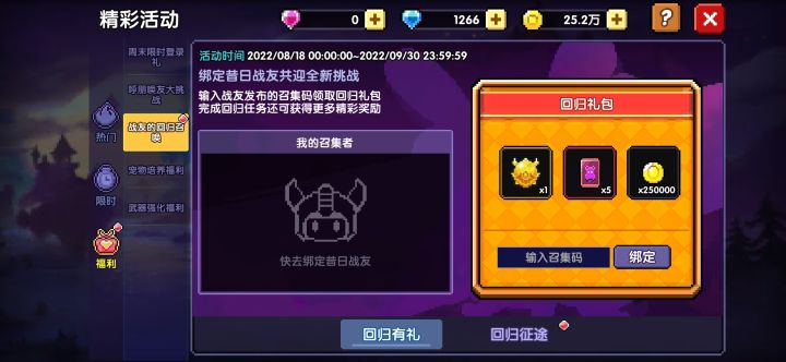 求求啦来几个回归玩家《我的勇者》捣蛋魔女佛拉丝隆重登场,全新时装,炫酷机甲,等你体验~回归玩家可在(精彩活动-战友的回归召唤页签)填写召集邀请码还可领取专属礼包: 5FHNS1RNZ5FALF