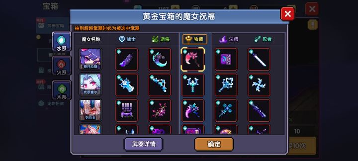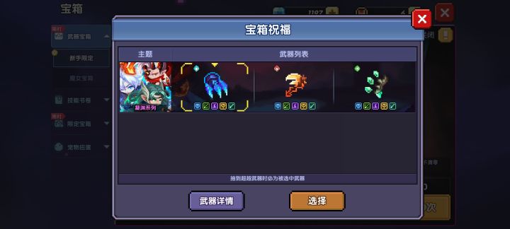 大佬好,我想走水牧,上面三个武器箱该开哪个,自选武器要选哪个#我的勇者