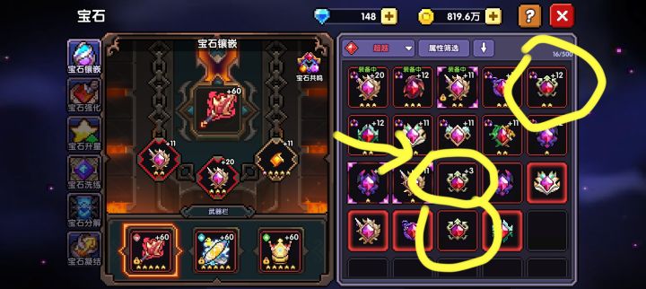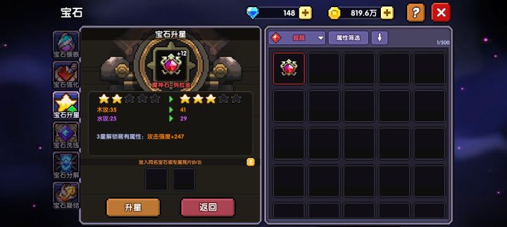 问一下为啥我指的这颗宝石在升星里看不见呀,是因为强化过吗,另一颗没有强化过的就能看见