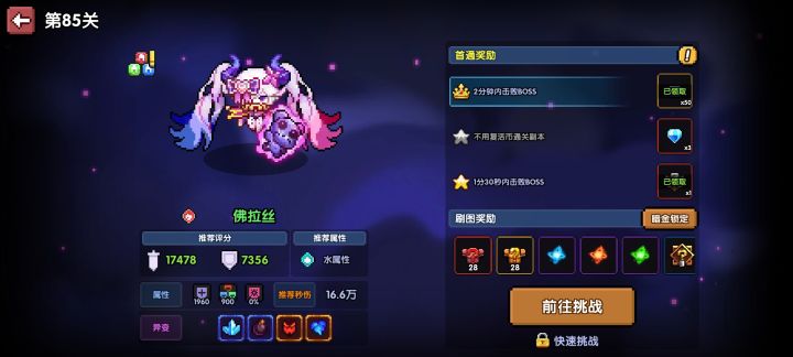 我拿我的小镰刀遇到boss一刀一个,砍到85关砍不动还给我秒了,后面我打87也是一刀一个,怎么回事,我推荐属性是够的啊。