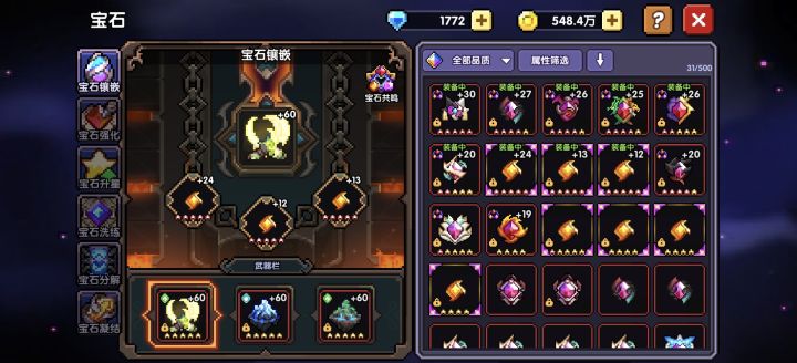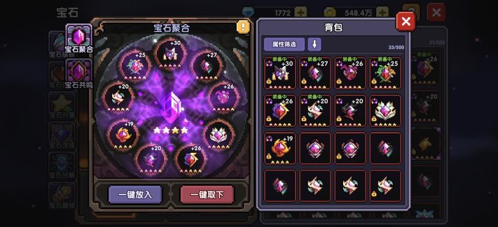 #我的勇者 陆陆续续玩了几年了,这个聚合共鸣一直没搞明白,通用毕业宝石和半毕业宝石都快套九了,应该是这么称呼吧,我是不是浪费了很多资源,求助求助大佬们