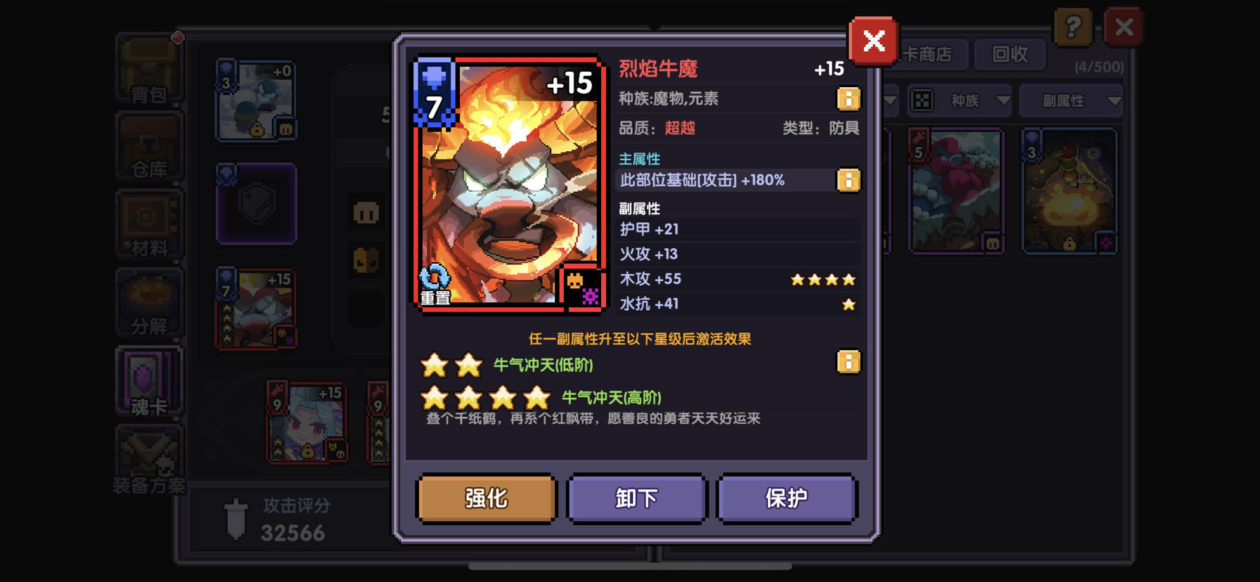 今天早上赌卡出了个芙法,虽然歪到攻击上了,单爆也凑合用吧,昨天赌成了个牛,算上这几天赌卡,加上拉商城的直升15包,花了90张双十一票子,3400钻石,切西亚是用四连卡上的,随便歪哪一个都行,偏偏歪到了神蔑牧最用不上的攻速,我已经麻了,十张老虎卡就出了两张元穿,不出意外的两张全部扑街,至于偶像,吃了我两张重置还是二星,已经不想搞了(ps,准备了20张偶像,爆伤4张,暴击值3张,来回吞没成一个)!!!
