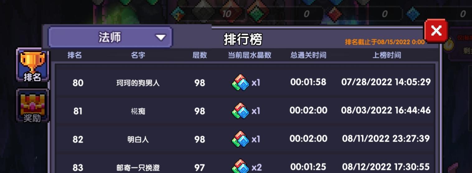 分榜形式:①如竞技场进图先选好按哪职业计算成绩,各榜按该职业最高层数猴三系图用时总和、水晶总数、时间顺序计算排名期间可更改绑定的职业,但会清除榜上成绩,通关楼层不会重置,只需用改后职业重新猴下最高楼层的三系图秘境之主榜如保留,按五职业中各职业猴三系图成绩总和计算排名。秘境之主榜如不保留,秘境之主位就按各职业榜,跟月赛柱子一样,按哪个职业进大秘境界面,秘境之主位子上显示该相应职业的第一②各榜