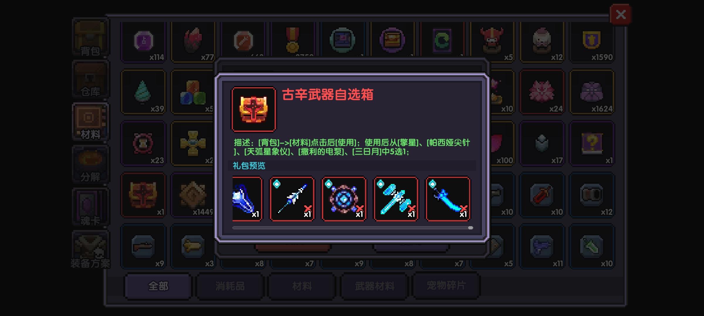 剩一堆资金 天天就只能买材料包和宝箱包 建议增加一些比如说 魔女武器碎片包 宠物包这些