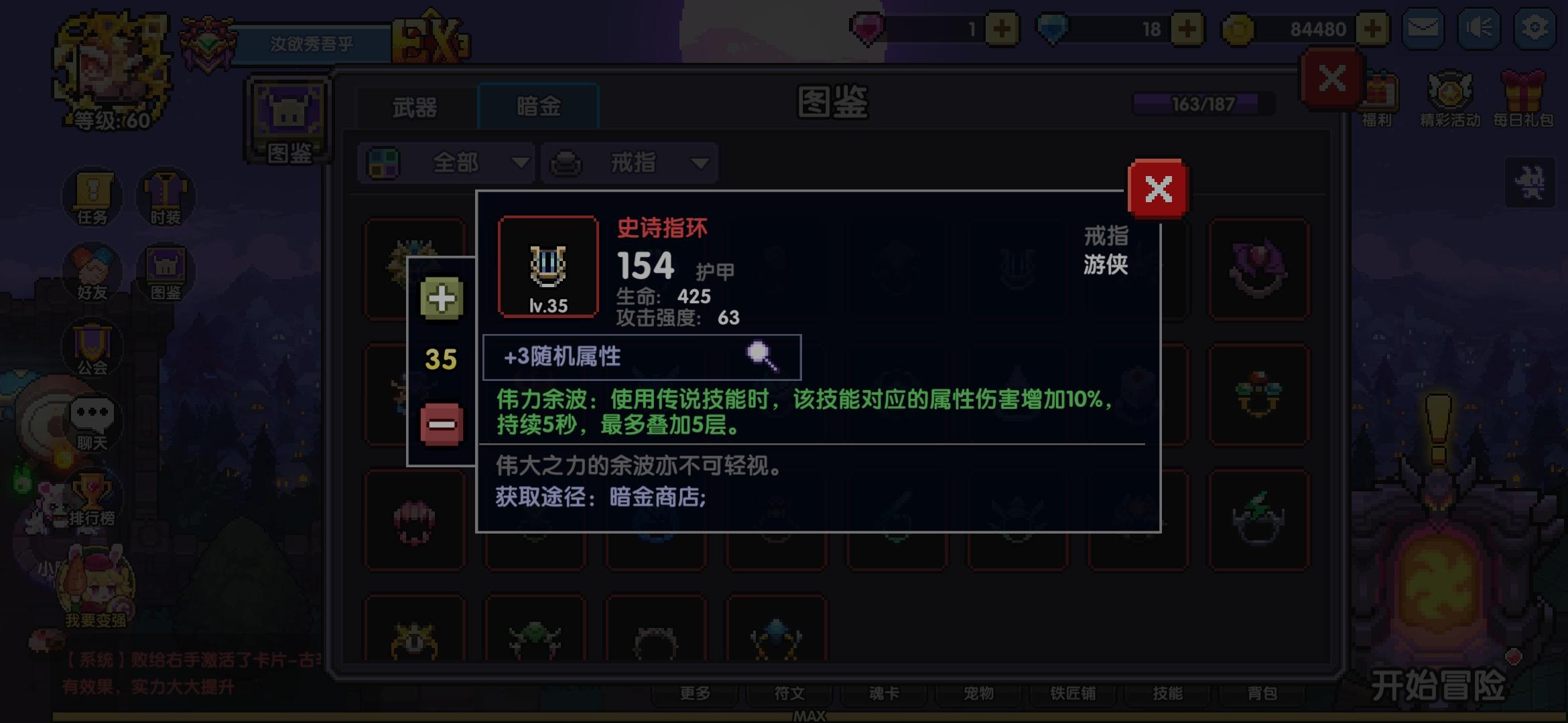 1.聊天系统我想叫新人加群,打个字就是敏感词,有时候想在游戏里和别人说一下话都说不了。世界聊天说话的间隔我觉得也有点长了,希望可以取消这个限制,或者缩短。然后就是把敏感词减少亿点吧,不然你设置这个聊天系统要干嘛?当摆设吗?就连游戏里的boss名都是敏感词,真的62.好友系统我想加好多大佬的好友,但是全都满了,50个好友位个人觉得太少了真的,之前公会的小伙伴退坑了,加了他们的好友,但是我真的不