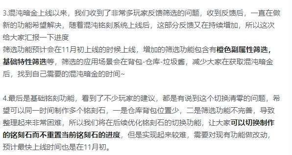 更新维护流程服务器维护时间:2024年11月7日 7:30~11:00 (预计3.5小时)更新方式:停服更新预计维护补偿:黄金武器币x3,神秘技能币x3,钻石x100补偿以邮件形式发送,邮件有效期为5日烦请各位勇者合理安排上线时间,以避免造成损失。【内容优化】【混沌锻炉—铭刻炼成】1.现在中途更换所选的铭刻石,正在炼成的铭刻石进度将会保留,并可随时切换铭刻石2.每颗铭刻石新增养