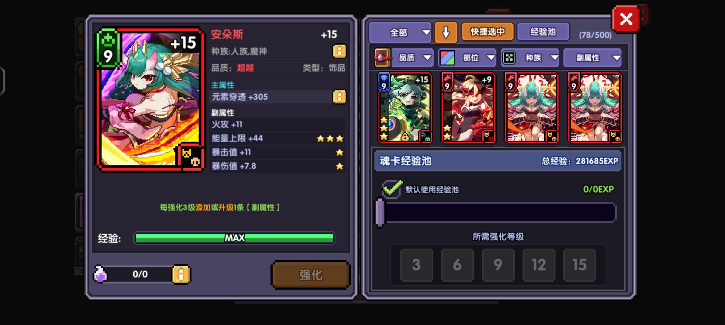 玩的恶魔战,这词条已经够好了然后还原本三星重置了一次直接5星火攻!顺便想问一下大佬们我这个属性现在还需要着重叠什么