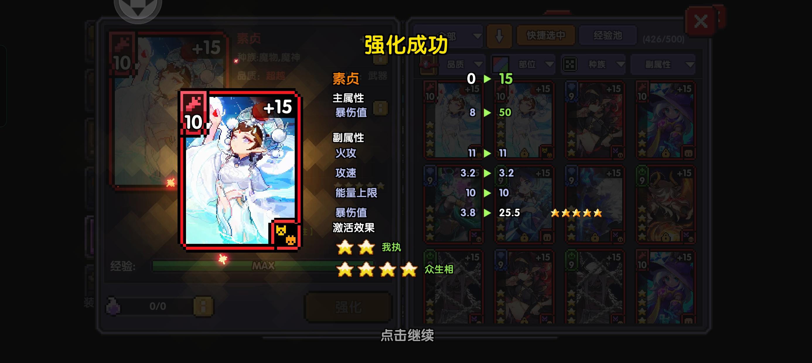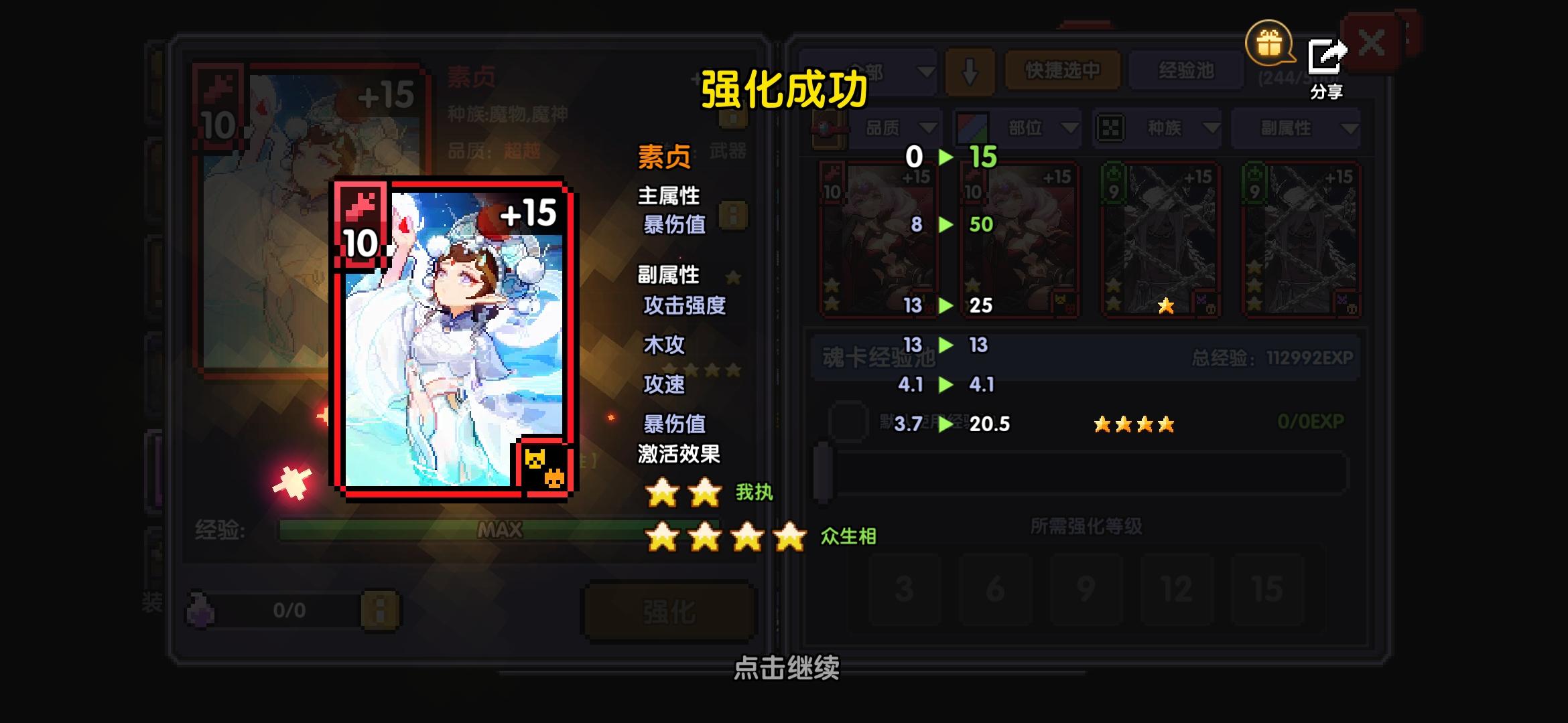 这张卡重置了两次,前三次都是三级三级升全歪,第四次直接强化满出了