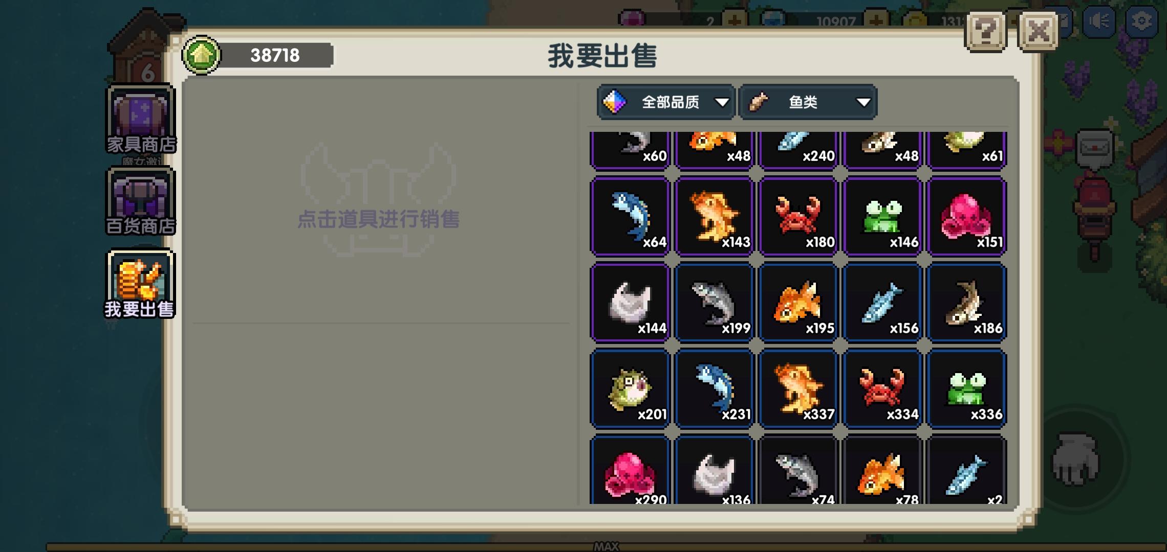钓了差不多2/3了,这是一件非常浪费时间的事情很难想象之前那一千多鱼饵我是怎么钓完的在小屋升级降价之前并不是很想把鱼卖掉但很糟糕的是我很快就没钱买鱼饵了(一天3100)