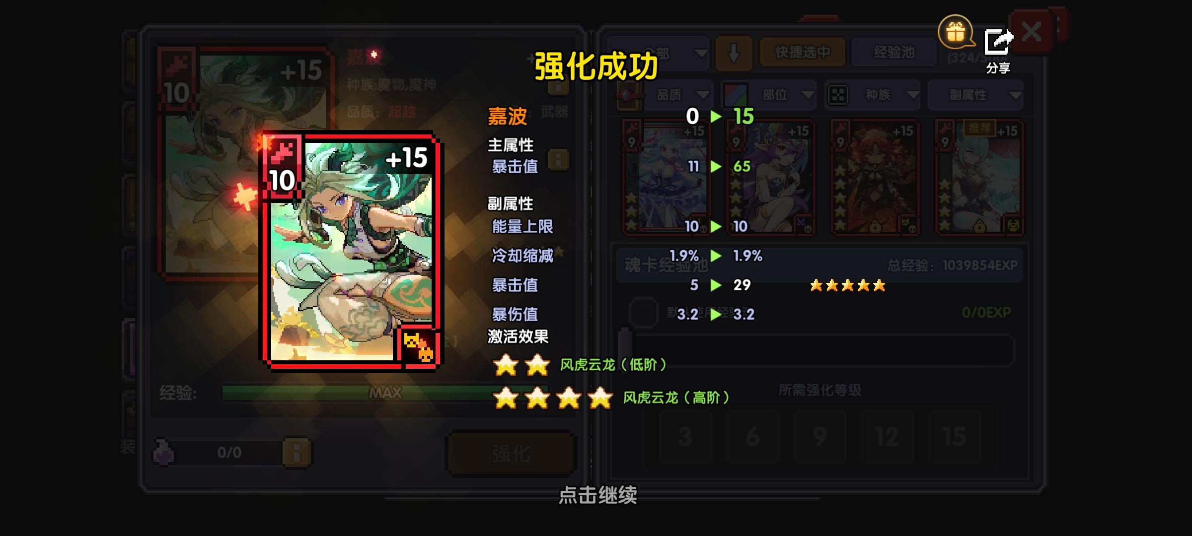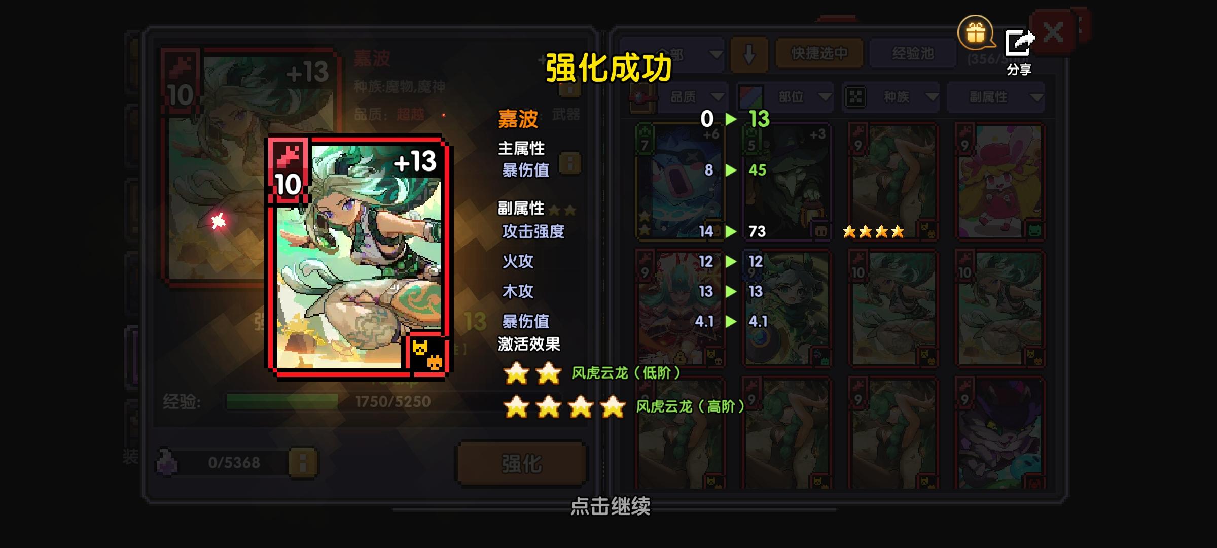 疯藤起家,差不多5个月。伤害凹的(圣歌木水叠满60,偶像5层,小队双穿+冷却,应该把冷却换暴击的,副职元穿,木鞋)穿透应该是差点够,暴击没注意到啊啊啊!少了很多。但大提升有点爽,希望后面能出4星木堕天使,整一套完整的;爽了但又没爽,真的容易暴毙!!狮头的效果起不到一点作用,策划是想和疯藤一样的减伤,但一样暴毙,换了日棋盘也是一样,真得多点无敌帧啊;大秘境玩不了一点