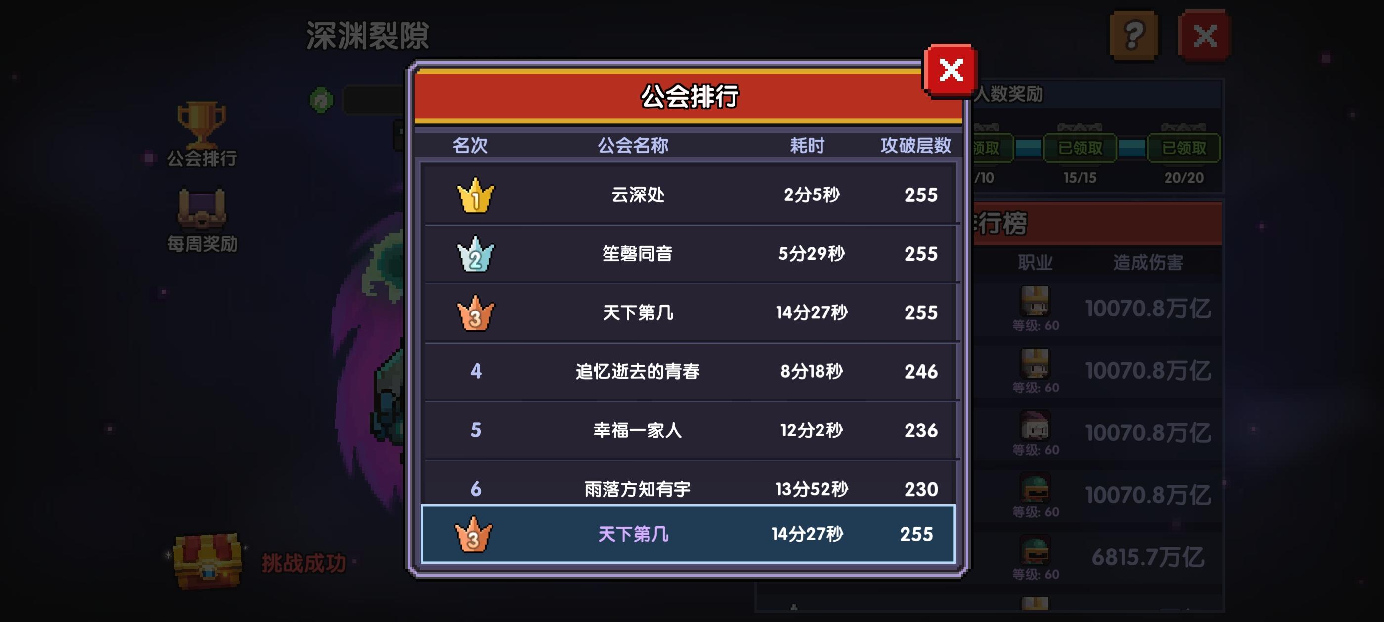 公会拿下裂隙255,全靠坚持与努力,没有一个氪佬