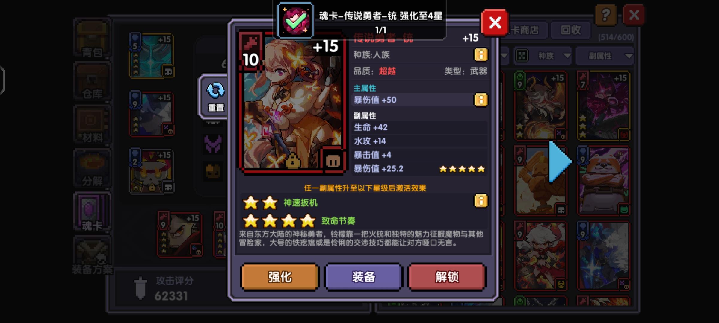 先上面板最近的提升比想象更大,计算的时候会有不小心遗留的提升空间,例如木深暗觉醒属性洗出一个攻强比较麻烦是魂卡,魂卡我只有1张4星凡尼,算了好多次才得出目前这个搭配,67cost是借用了公会里面的宠物羁绊下面是一些基本的战力系统再然后就是狗托时间,真的很欧三把武器词条全部洗好,这里懒得放图了,言天也在玩这区,就...没欧过,双护甲很难绷得住本来是打算挑战零氪45天万亿,但是