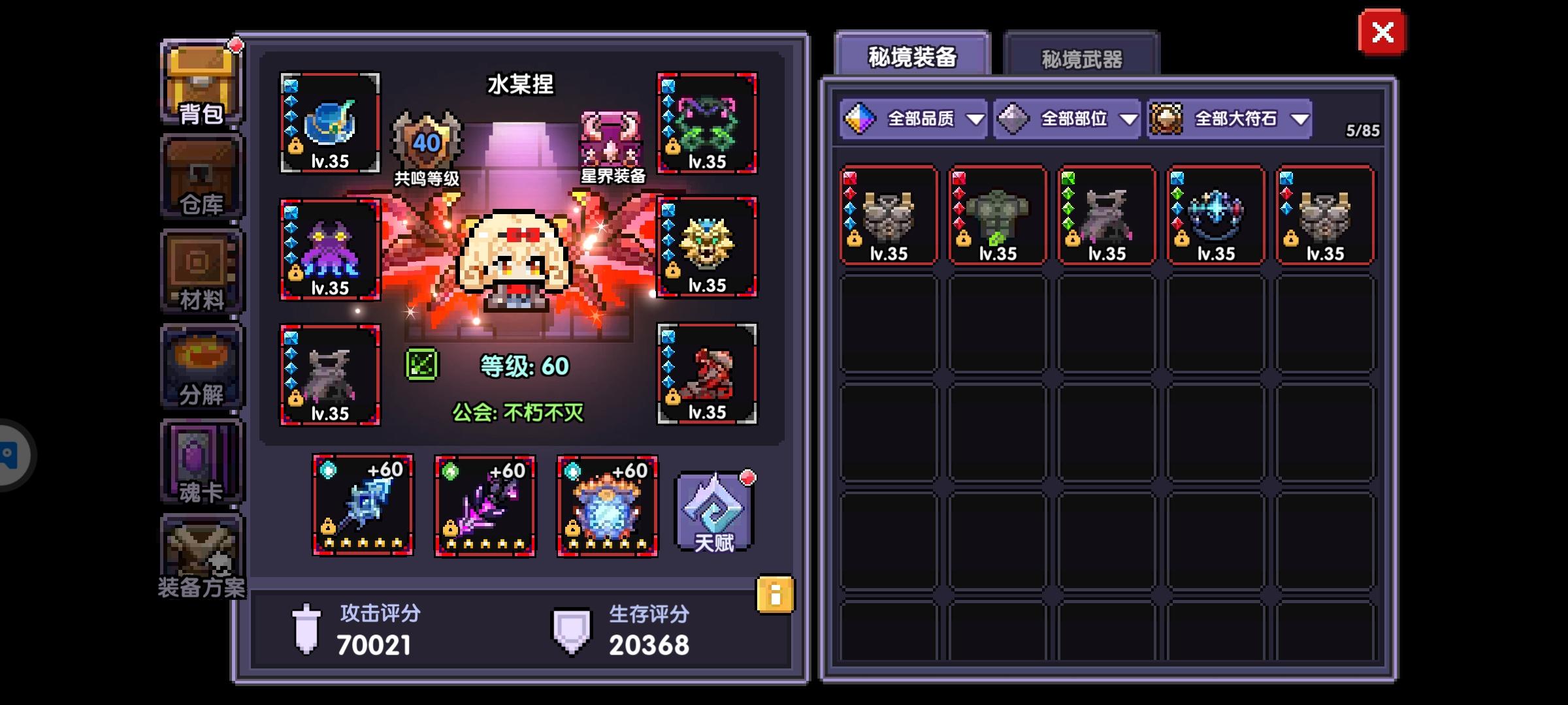 从开荒的摸爬滚打到做完第一套bd的喜悦,从兴奋的期待新武器的降临到咸鱼的枯燥等待,我的勇者算是我唯一坚持下来的养老游戏。曾换过一次公会,直接从半死不活的养老会转到了人声鼎沸的不朽大家庭。在不朽里有许多的大佬指点,渐渐的把自己的号走上了正轨,成为了自己曾经期望的万亿大佬,宝石也来到了套10的养老阶段,虽然时间的流逝熬走了很多人,但希望我还能坚持下去,成为我的勇者游侠糕手!(主要是想熬