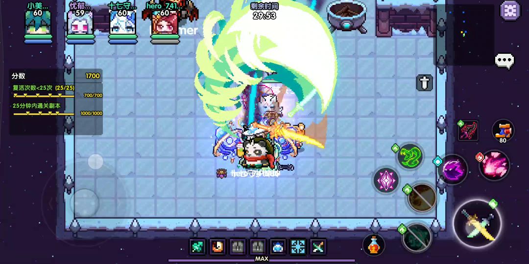 首先,前面两关小怪得靠自己打,第三关捡了勇者锋芒之后大家面板都是一样的 然后萌新过不去的原因大多都是不会使技能我猜直接说技能名字萌新也不认识,标了1234。首先,把1打开,一定要打开,一定要打开,一定要打开,点一下就行了,不需要点第二下,这时候背后会出现一架机甲有机甲时另外三个技能会有额外的强化,乱点也能过,有机甲时使用技能会增加一层负荷当负荷十层时机甲会变黑,同时技能的伤害进一步提升,但