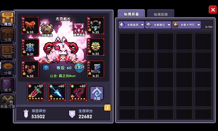 正文开始总体来说没啥变化但是因为太难了 还是跟大家讲讲细节的方面搭配一览图:一、武器推荐洗练:魔女:水攻-首领-穿透刺链:暴击-首领-穿透【觉醒爆伤】镜子:爆伤-首领-穿透【觉醒爆伤】一:装备头部:冤魂洗练属性:水攻、爆伤核心符文:爆伤能量符文:随意(能量等级高的优先)披风:拳王披风洗练属性:水攻、攻强核心符文:爆伤能量符文:3水攻胸甲:孤狼洗练属性:水攻、暴击