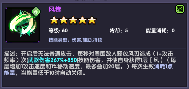 经过测试攻击频率和描述基本吻合即满攻击频率4的情况下,攻击次数为5,则4秒叠满20层风由符文6件套可以得到效果有两个①每秒减少(攻击频率+1)*0.5的cd②第一次20层绝息后,每次都是10层风开始所以我们可以得知在满攻击频率的情况下,我们除去第一次叠20层,只需要2秒,既可以完成20层风的充能那么,我们就要关心一下绝息的cd了绝息的cd是15秒,我们的cd上限是45%(除去满月之类