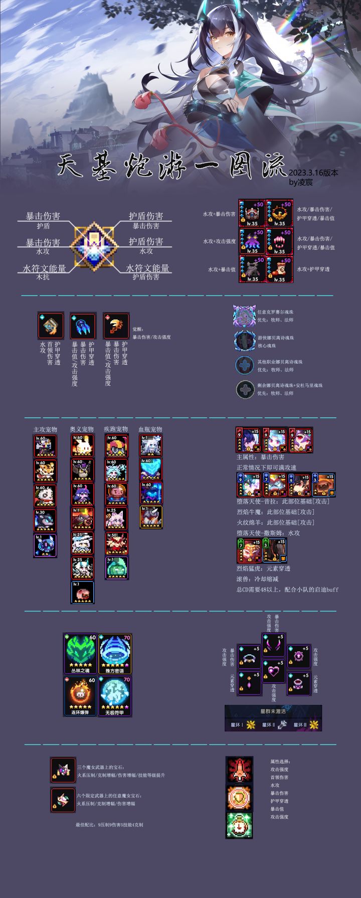 【前言】本期秘境时间已经过半,对群秘境整体难度低于首领秘境,不过打铁还需自身硬,再好的攻略也需要自身有一定的练度支持,希望本贴能给可以通关120且还想提提速的小伙伴们一丢丢帮助!(本帖可能没有那么专业,仅是一些个人心得,欢迎各位大佬留言评论指正改进,大家一起加油)【注释】三合一,每篇依次是武器装备,魂卡选择,星盘,技能,宠物,符文每段末有一些小经验和视频演示BD推荐:阿米系列,娜贝离诗系