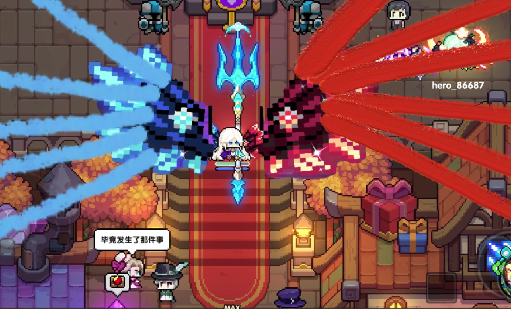 感觉很像是bug的样子 描述: ①《魔女纪事》第二章第三天攻击猫咪时触发 ②在猫咪(战斗)死亡时看见左上角血条蓝条同时清零 ③紧接着会传送至战斗场地,这时可以随意走动(如视频所示),向左可以看见自己的小屋、一个人物交互的感叹号以及主城(不过小屋和主城都无法进去,感叹号也无法交互) ④(另附)点“返回主城”时主角会有一瞬间获得战斗时的武器及技能(不可使用状态) [因为觉得可能是bug就投上来了] [