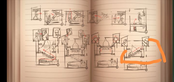 我在完成这一步的时候,吊灯角度老是调不好,左边走走试试,右边走走试试然后,我从左边的笼子里卡了一下出去了。瞬间退出游戏了,太难了,我看着提示老半天才打到这又要重开,害!