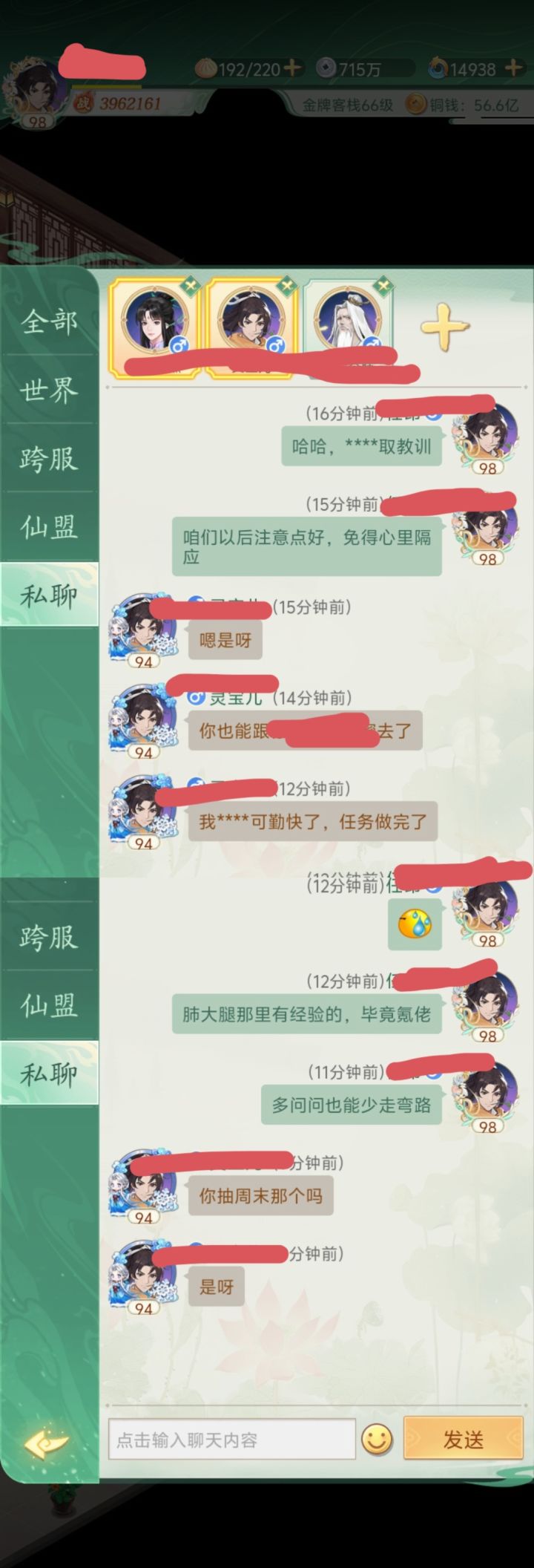 这游戏真的是疯狂,敏感词一大堆就算了,随随便便聊个天就能给禁言;有点权利就把玩家当韭菜拿捏,是觉得这游戏非玩不可吗?
