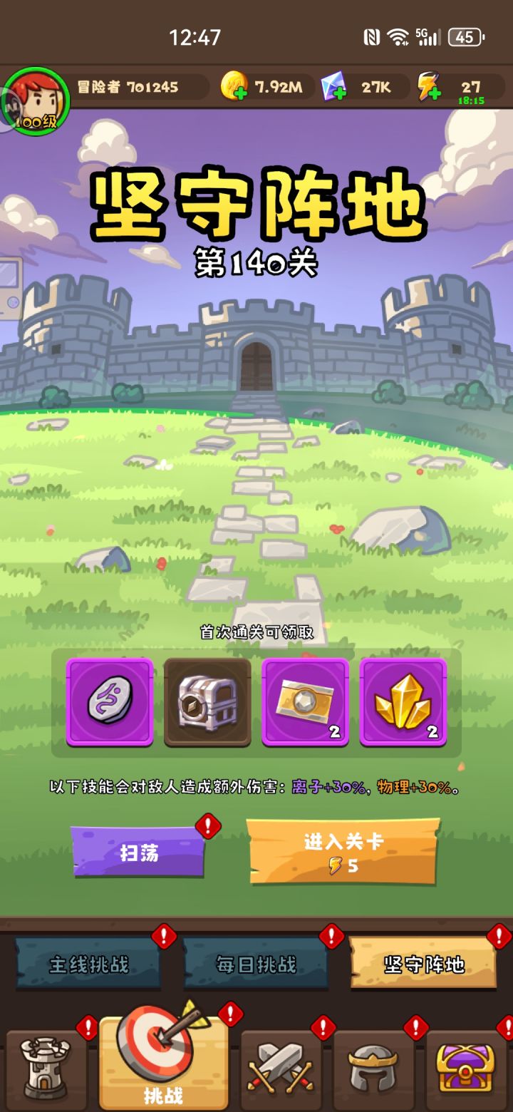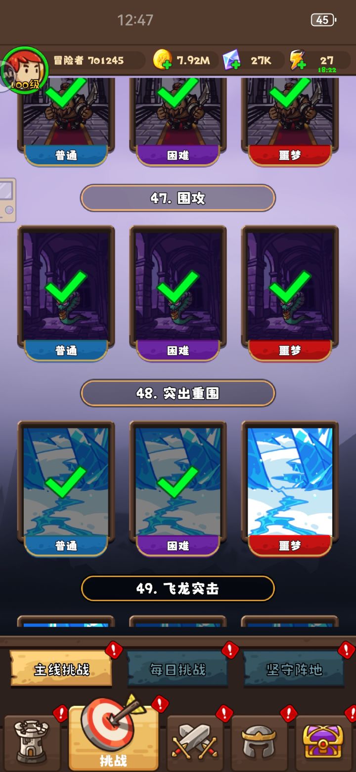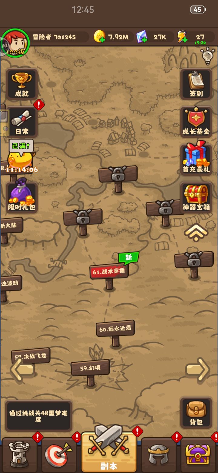 关卡61,主线48,坚守140。只要你足够耐心,总会消磨时光