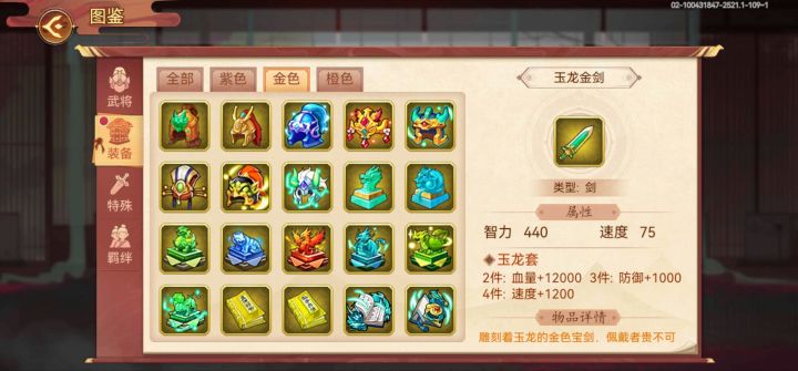 时间2024年12月20日由于20年国庆才入坑,白虎武器一直处于不全状态,直到24年冬至活动,终于凑齐了白虎武器,至此装备图鉴全满。