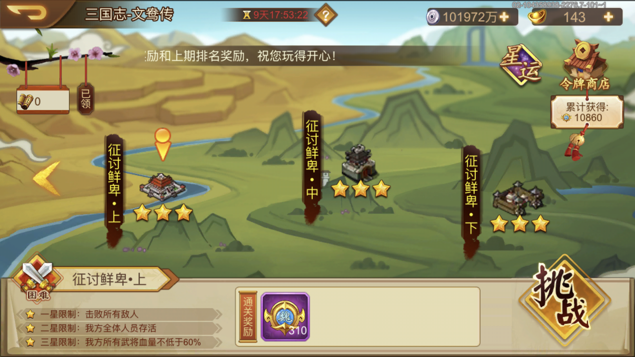 三国志困难关卡全三星都打完了,星运困难奖励居然不能领😡