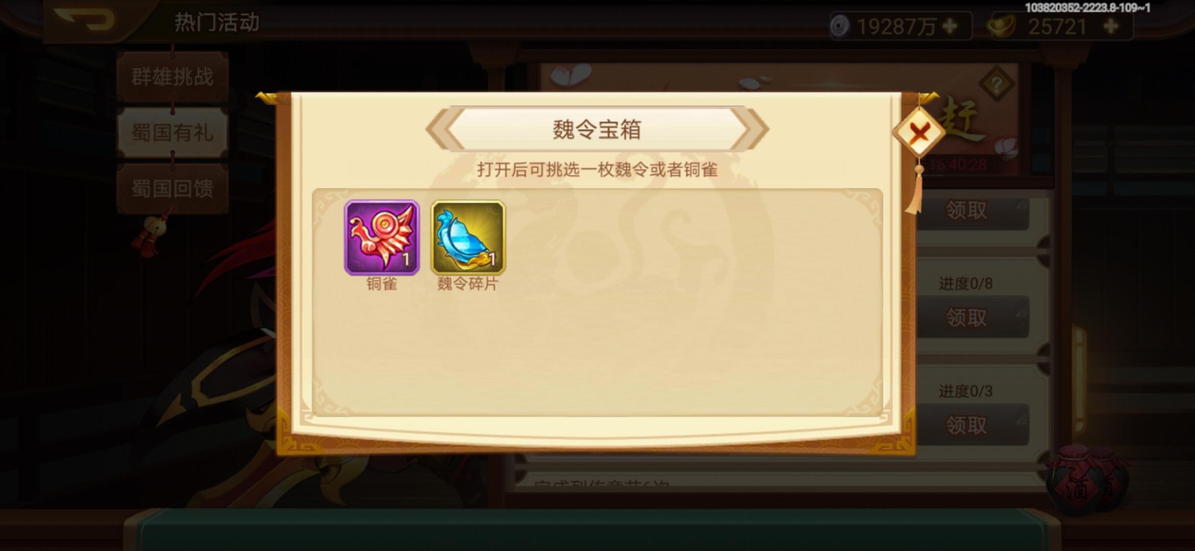 明知道蜀国箱子最难得,搞的蜀国活动还出魏国碎片,补偿补偿