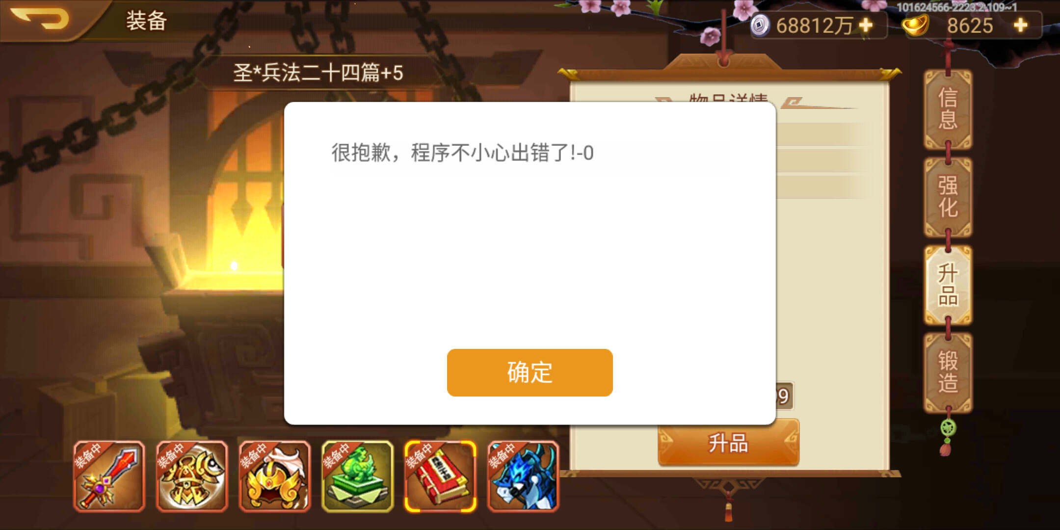 兵法二十四篇什么时候能修复一下啊,一点升品就程序出错。