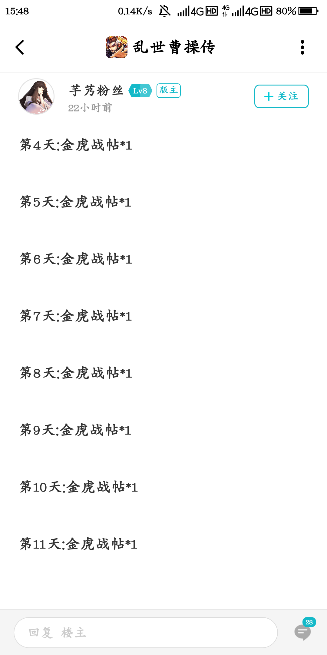 早上起来先推了两周目,然后无聊翻了下装备图鉴,觉得少了些东西。比如金色的武力书和金色的智力马,联想到帝都的挑战台可以扩建了。然后看着群里的大佬几套橙装,就是没有几匹橙马,我觉得心里很不是滋味,觉得可以在洪荒系列的活动中加入新的橙马了。以及还差两本白嫖的橙色书,哈哈(ಡωಡ)hiahiahia,慢慢来吧