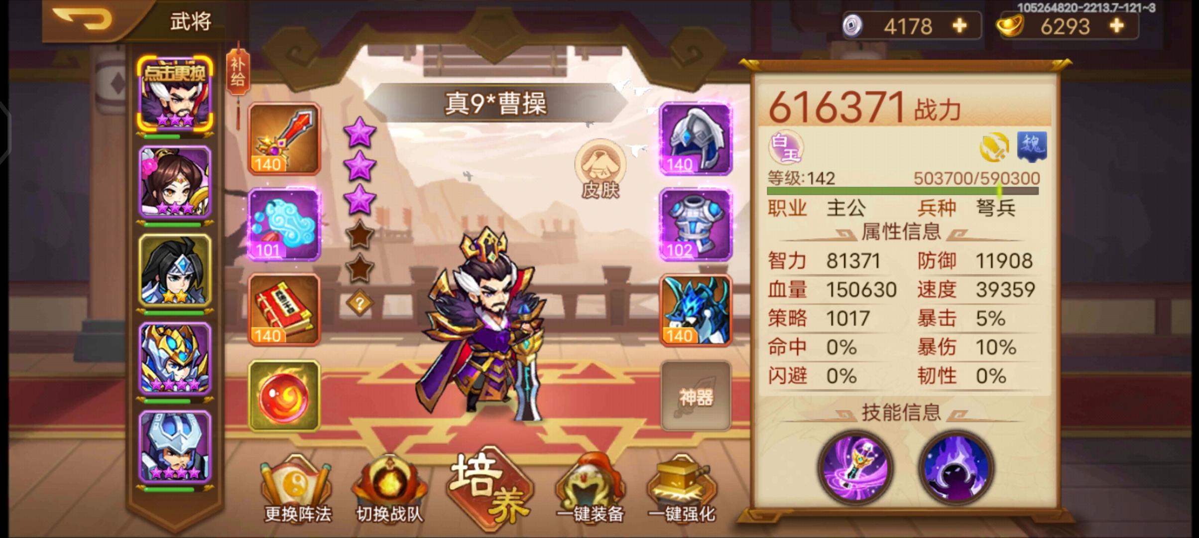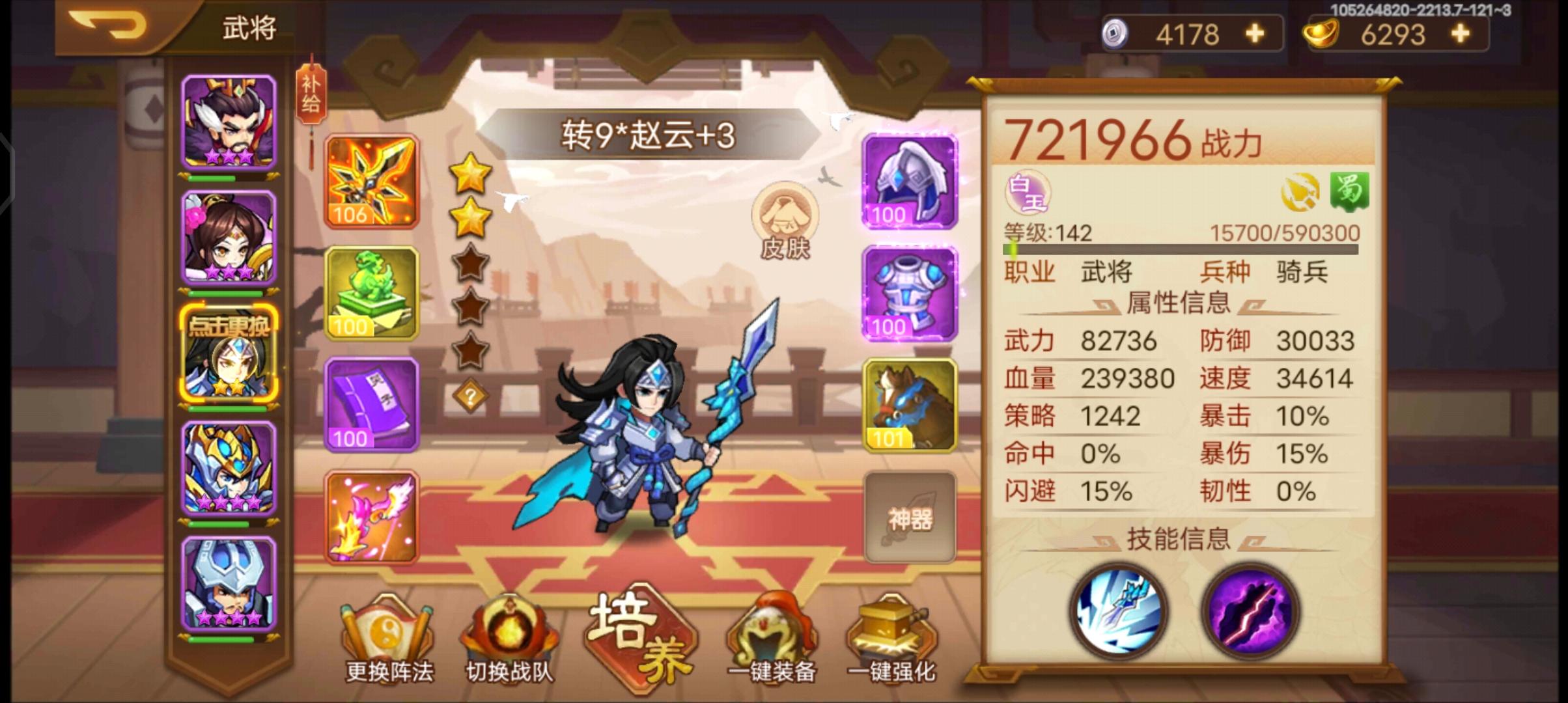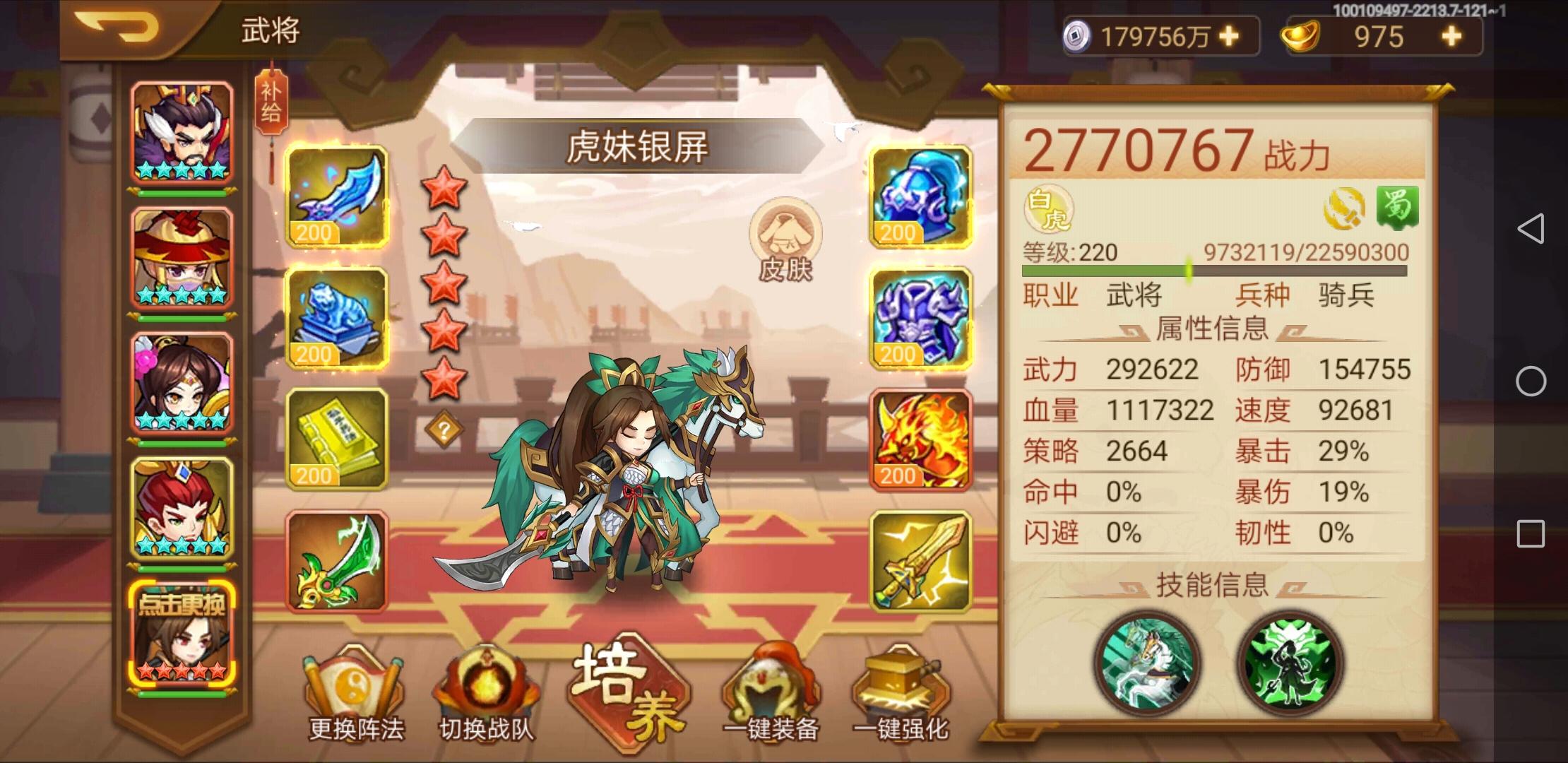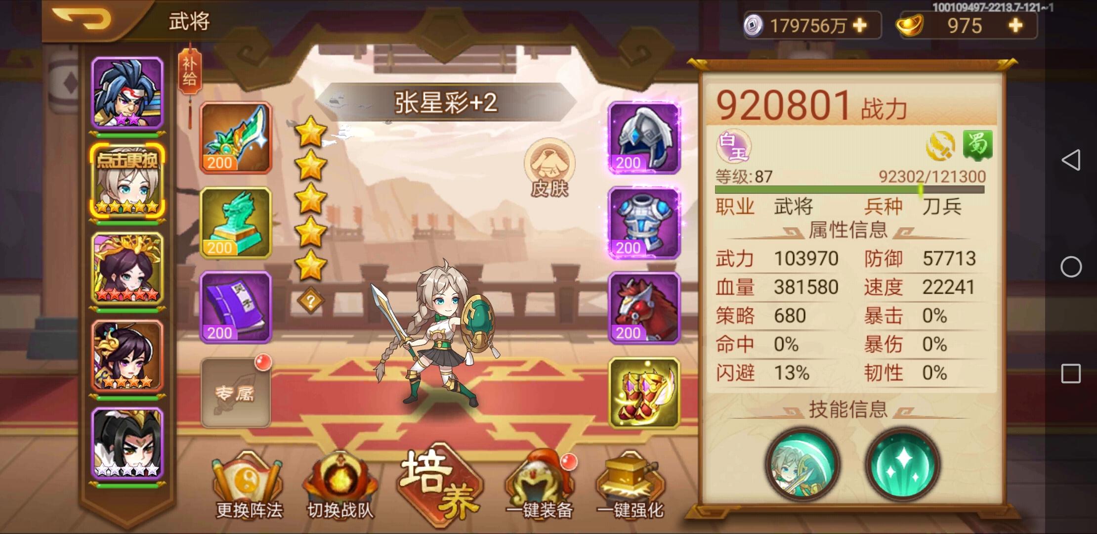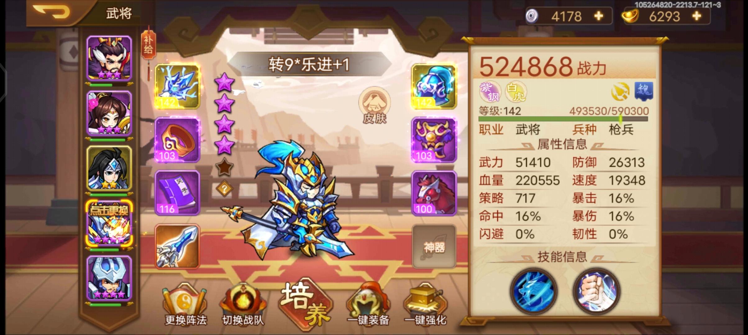 自己配的阵容,200万昨天过的五子。今天直接4w抽到500次,刚好装备,自己配一个阵容 把五虎,五谋,都督都给过了,国士无双我速度不够 诸葛一个技能给我秒了。现在是继续推周末,等国庆抽奖,还是打什么副本。阵宫那个青龙能打过吗?曹仁需要换邓艾吗,他们说提速