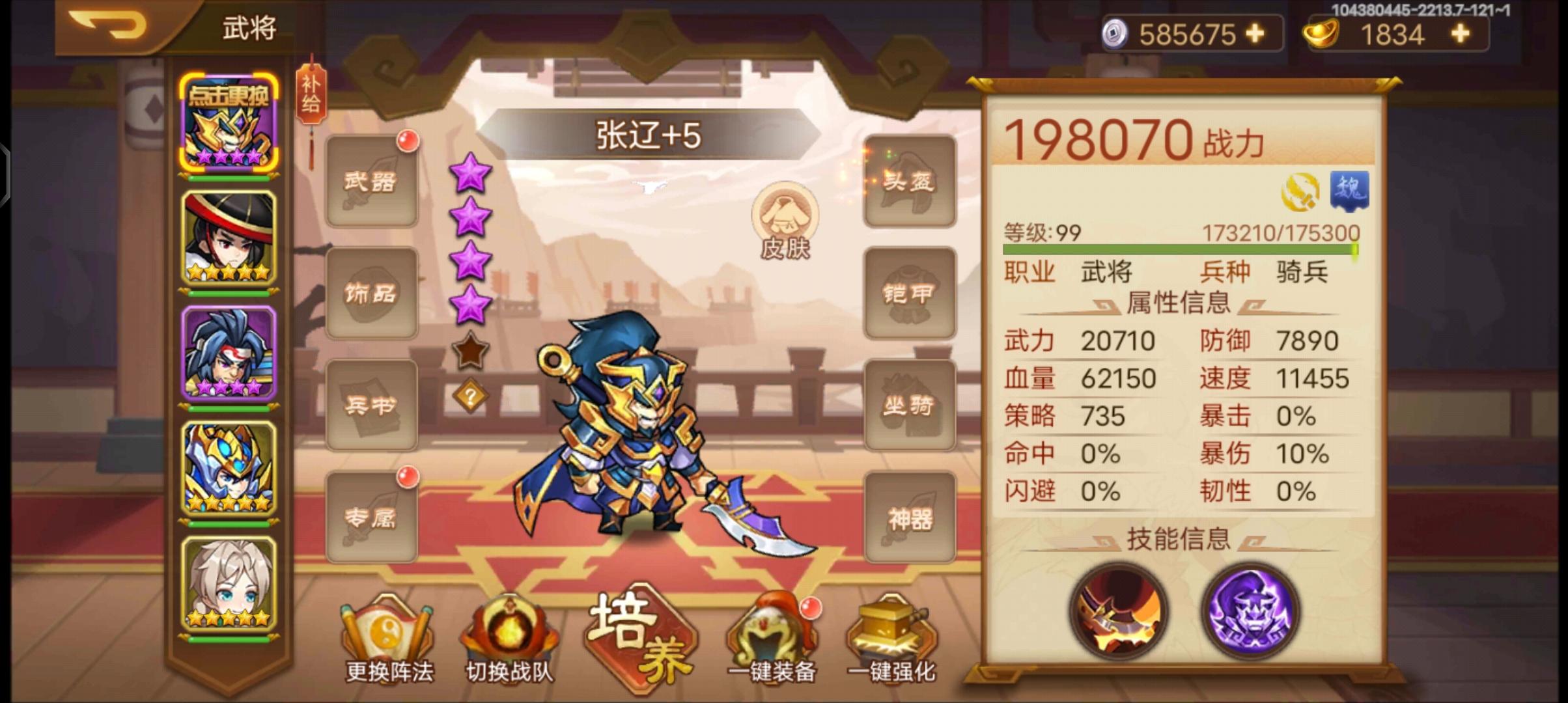 大佬给配一下阵容了,目前新人第四天.个人认为,目前一星吕布,一星关妹,一星魏关,二星典韦就是摆设。前期不如一个4星典韦好用,我目前辅助卞妓3星,邓艾,月英都是2星。我个人认为,曹操,3星鸡姐,2星赵云,4星乐进,4星曹仁,可以应付前期很多副本了。关妹10绝和童渊周期都是2个月左右吧。目前输出只能靠乐进,赵云 或者抽出二星吕布最好。刚过五子,打五湖扛不住,装备等级太低了,银两有点缺,装备目前想搞2个玉龙甲,2金色马,和一个紫钢头。各位大佬给点看法吧。