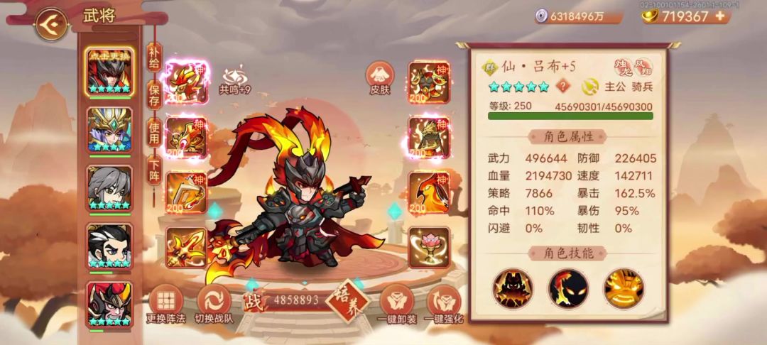 根据数字佬的思路换的另一种打法,宪英圣昊天塔,徐庶+5盘古,圣赵云伏羲,和尚鞋子,关羽圣灯且一级共鸣,疯羊阵