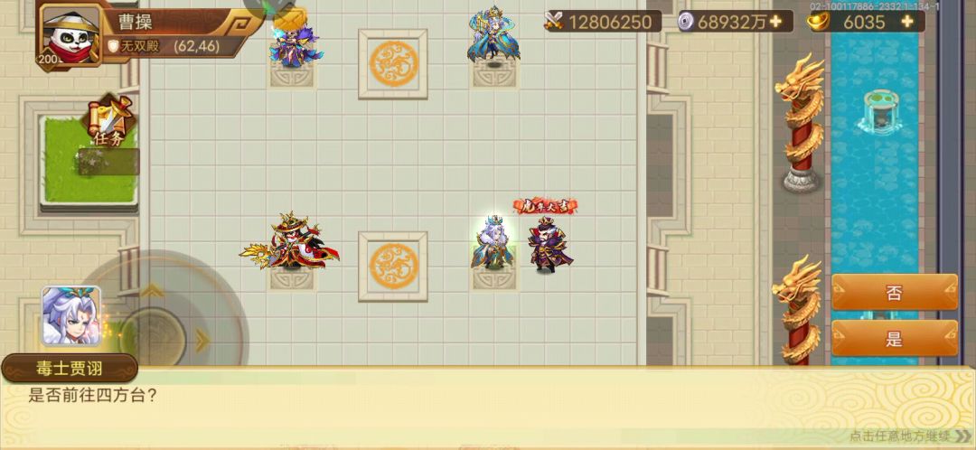 区区贾诩,也敢造次!首先说阵容,张宁,月英(卞姬),赵云,邓艾,加输出将。再说阵法,很显然,白马阵。我的是36级,可以参考一下。然后说一下出手顺序,邓艾(面板速度120900,貂蝉专属,10%速度,精炼速度加8000,逐日靴+10)一速,赵云(我的面板是118800速度,要专属加10,洗的10%,但是没有精炼速度,橙枪和马分别+9和+8,《孙子兵法》+6)二速,张宁(87000面板速度,加伏羲琴,天赋速度点满)三速,月芙或卞姬四速,最后输出将。具体过法视频里有。没有邓艾的话,星彩也可以。不过可能出手顺序有变。如果赵云达不到的话,有乐进也行的,十觉最好。五绝也行。这样实在过不了的话,四免伤将(月英,卞姬,刘备,曹操全部五墨)加高阶玄武(我的是36)也能过。只不过对整体血量要求高了一点,11-12万应该可以过了。好了,就祝没过的人早点过吧!😉