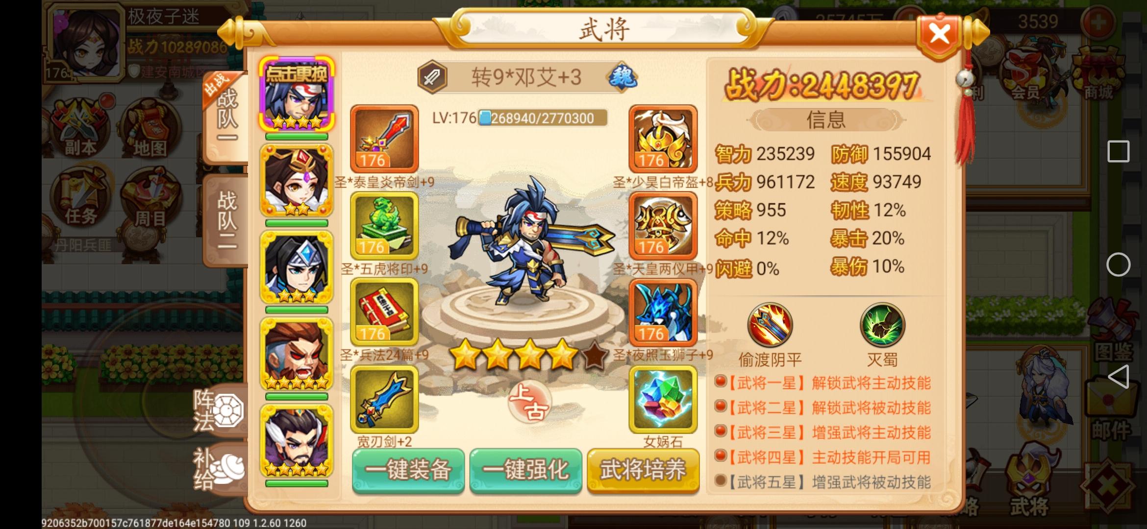 话不多说,直接上图心得什么的,只有一句话:即使你先手,只要打不残我,就是我先手,徐庶的速度足足有13万,想比速度,平民玩家是很难做到的,没办法,只能硬刚,而硬刚的条件是你起码能站稳,所以我上了玄武,说实话,刚开始我没想过能过(打了几次有感觉了才觉得可行)记得带闪避专属然后刷开局,这个真需要运气,首先,挨一顿打后,你起码能留几个在场上,(这个是为了冰住对方大部分,具体你看着办,反正我也有点懵逼),