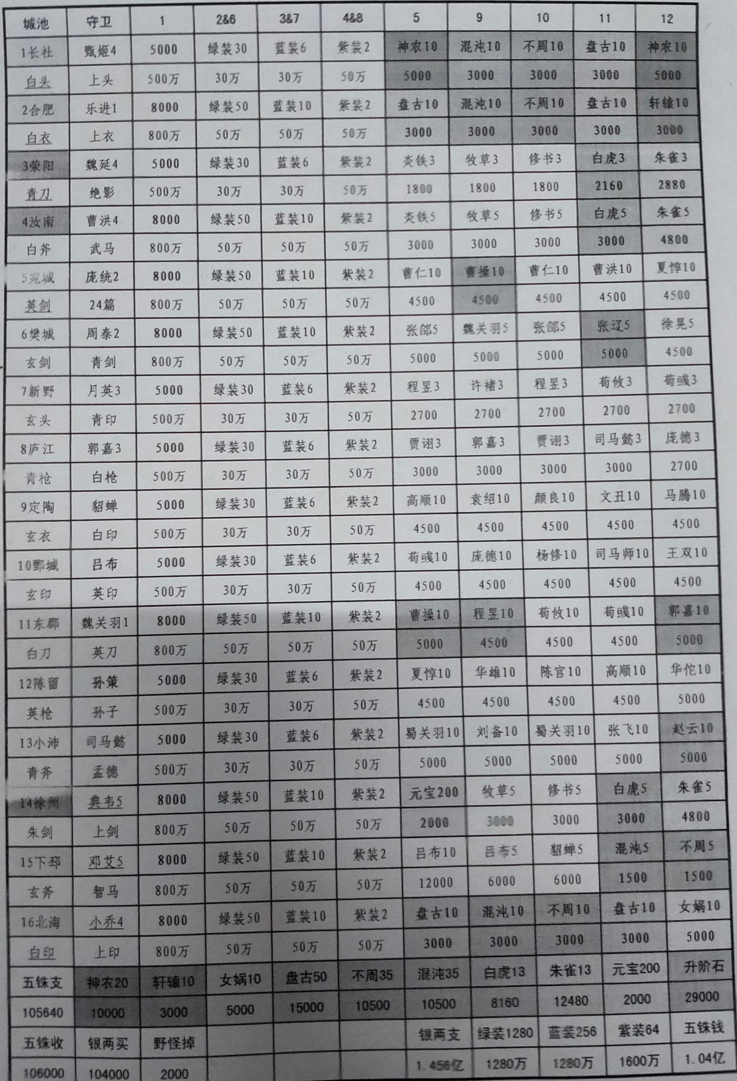 新版城池掉落表