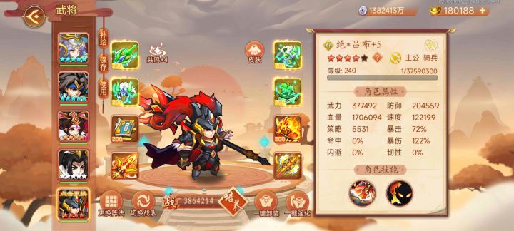 天天也没新副本打,pvp都是大佬的天下,找个鸡肋高顺玩玩,高防御的高顺不好打,平民武力不够,如同刮痧,吕布启灵后给平民有了过关的机会,风杨阵32级,吕布启灵+4,配盘古斧+13,苄基启灵+1,过了第一关后面就好打多了,下一个董卓。