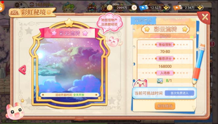 彩虹秘境是《永恒岛怀旧版》手游中一个神秘而诱人的练级圣地,它以奇幻的色彩和丰富的经验值奖励吸引着无数冒险家。这个副本不仅提供了高倍的经验值,还隐藏着可以进一步提升经验倍率的经验秘药。彩虹秘境:1、一张彩虹秘境挑战令,可增加30分钟挑战时间,2、在彩虹秘境内,挑战时间耗尽,会自动消耗一枚挑战令,增加30分钟挑战时间。(背包内无挑战令则会被踢出地图)。3、彩虹秘境内不可组队。4、彩虹秘境存在