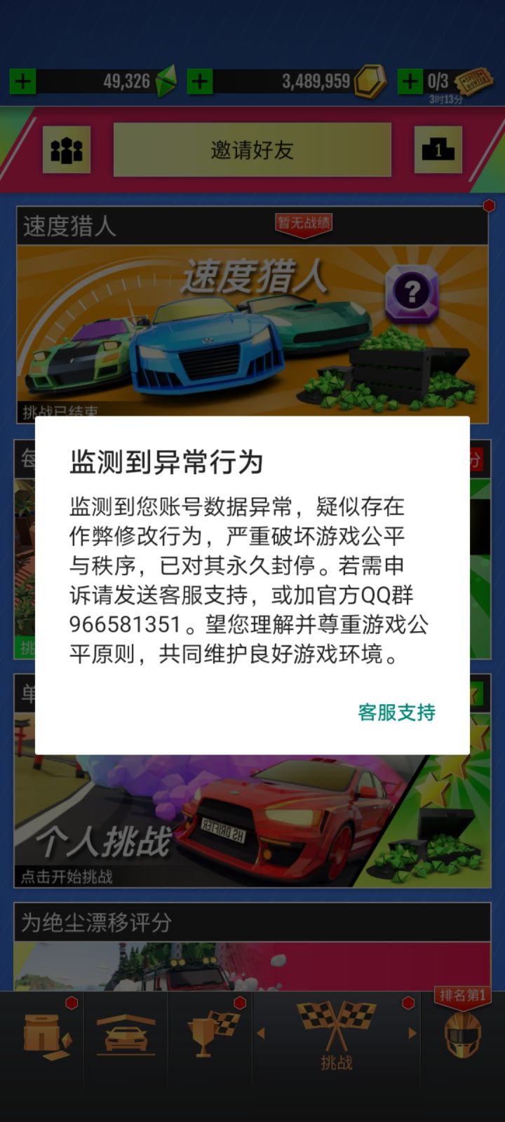 对方一星车,跑的飞快,我满星跑输了,结果我说异常,无语