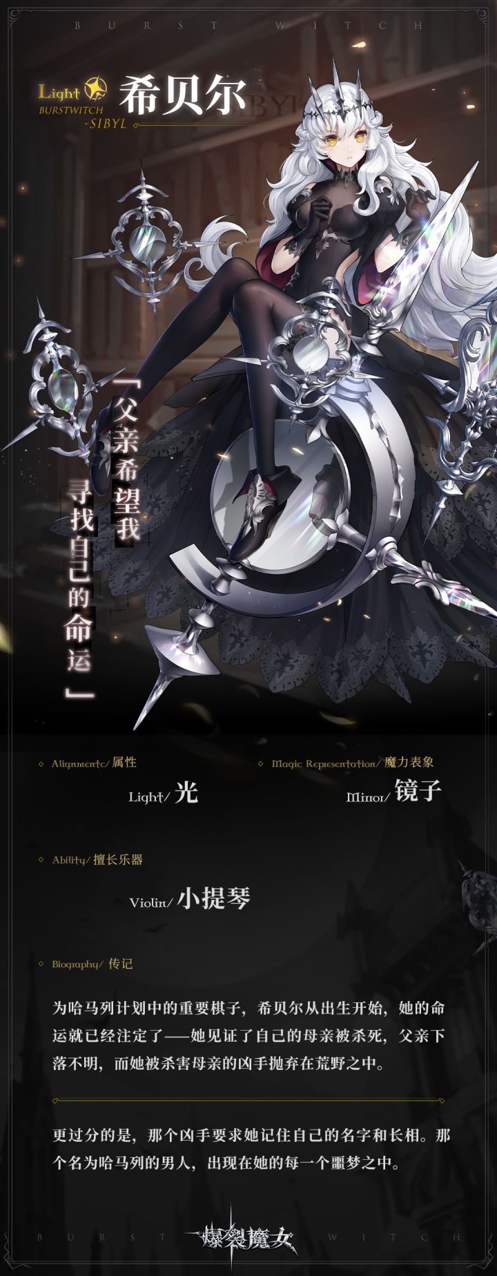 晚上好喵~最近夜莺森林里来了非常多的新人,为了照顾新人,安莉斯我觉得应该把夜莺森林中的魔女请来让大家多认识一下啦~今天要介绍的是我们的希贝尔~嘛,怎么说呢,虽然希贝尔在夜莺森林中度过很长时间了,但她的身上还是有着数不清的谜团和秘密……希望她可以有一天真正迎来自己的人生。不知道大家对希贝尔还有什么样的疑问呢?不妨留言告诉我们哦!我们挑时间一定会统统回复的!
