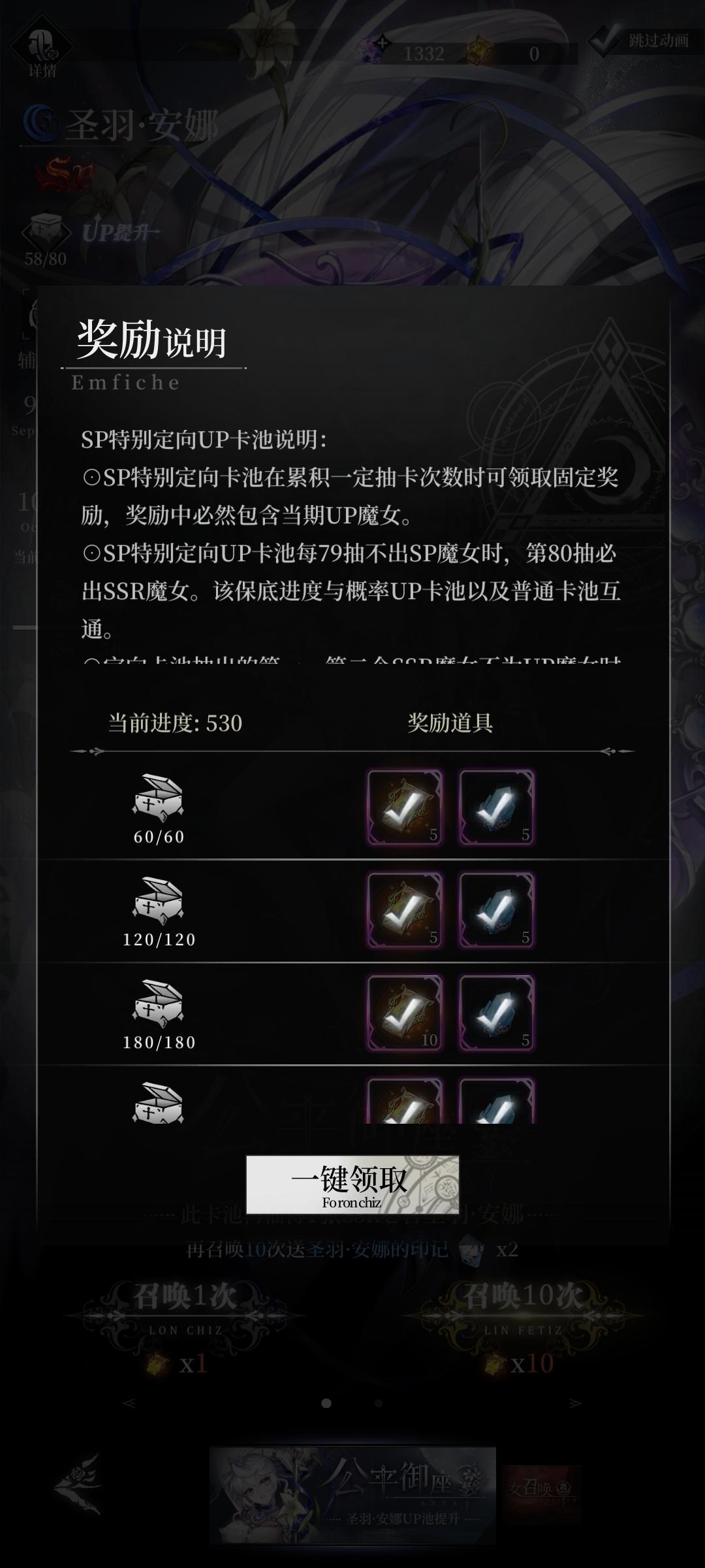 讲道理 作为庆典活动的奖励还是颇丰的30张魔女票 30个圣器票 30个光辉之书 30个碎片只是和SP比起来就是杯水车薪了😂