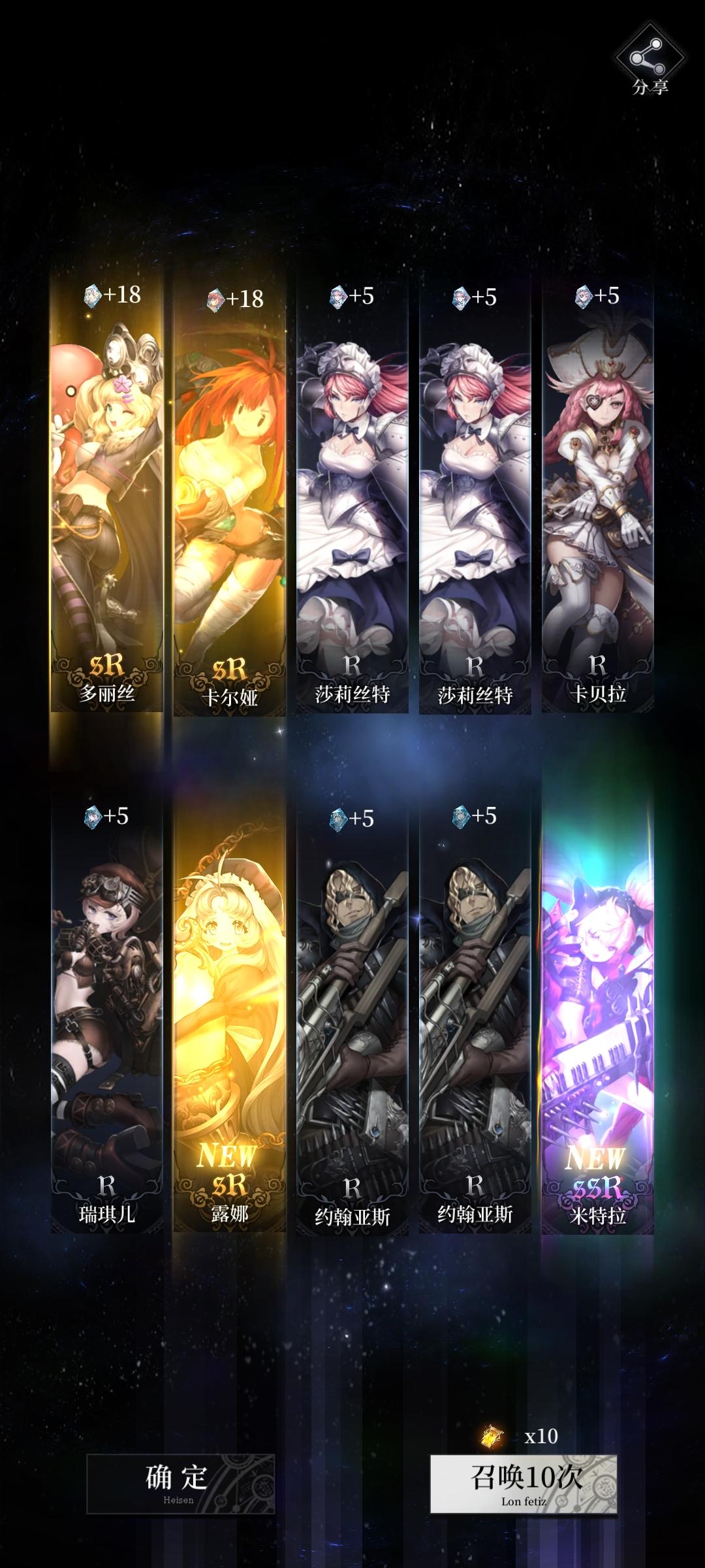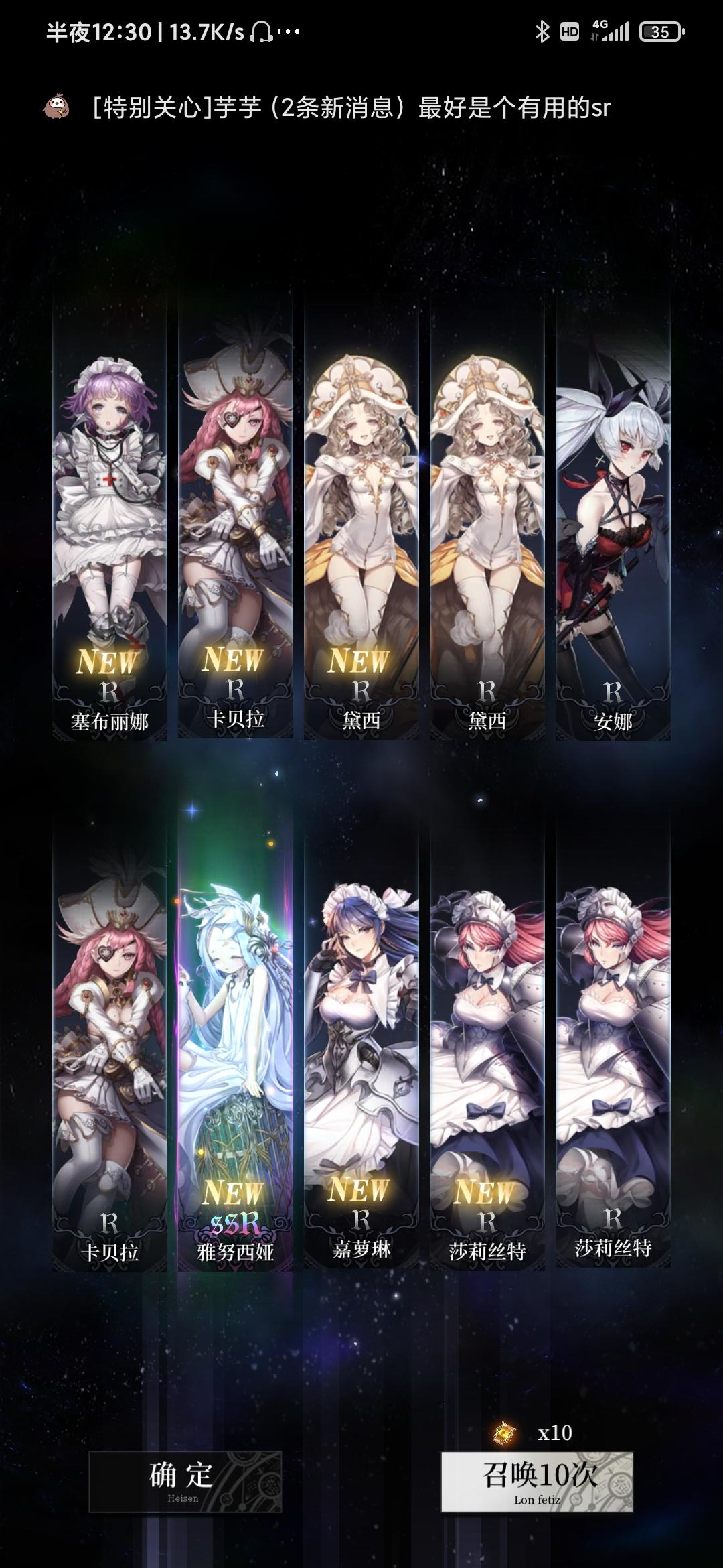 今天只抽了一发十连,没出双黄,不知道四星鸟笼和四星伊丽莎白哪个强