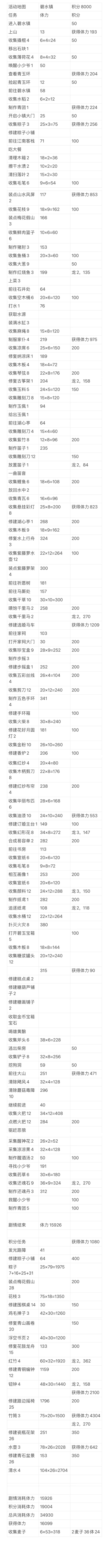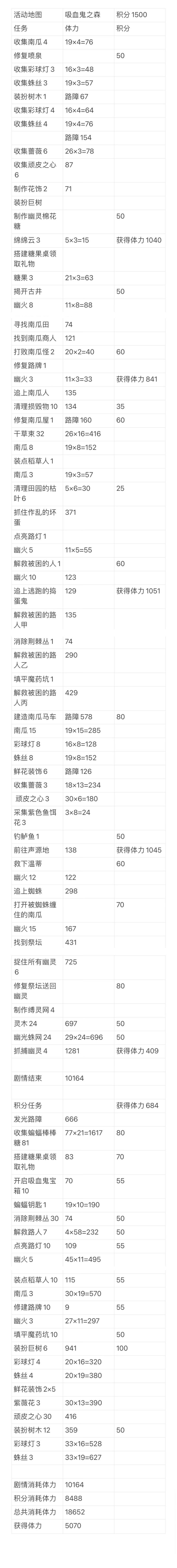通关需要差不多7000点体力红花和钥匙宝箱都需要耗费体力点通关奖励三个箱子三个装饰:没有体力点,只有装饰点聚月泉:300点体力观星阁需要耗费体力收集完成共计可获600点