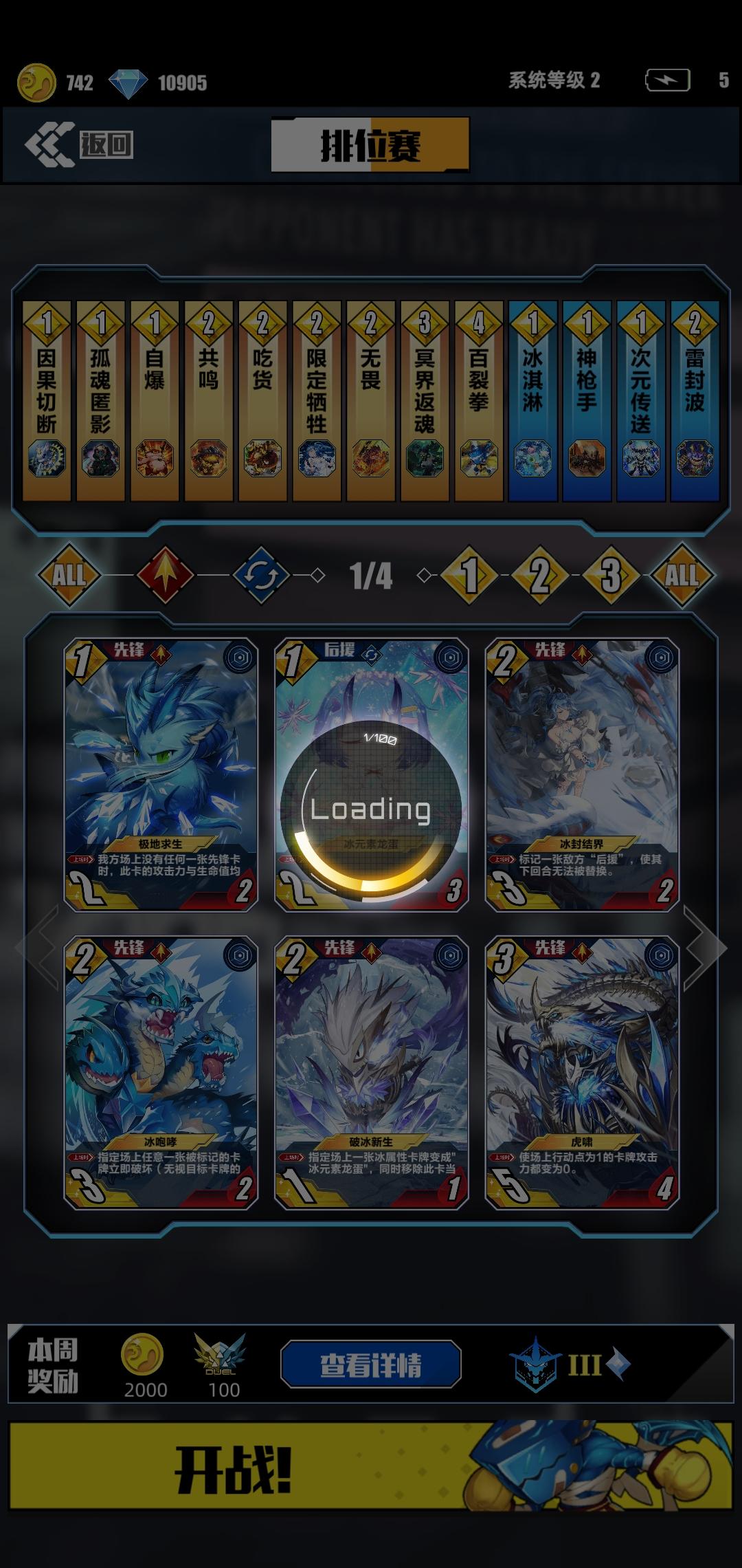 就这样卡住了,动也不动,进度条也不动,也进不去打牌,只好退出游戏重进,然后排位就掉了星星