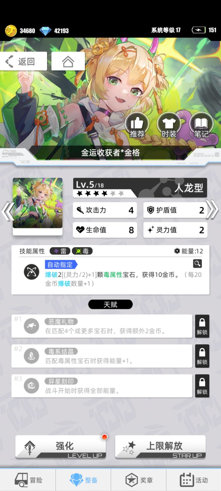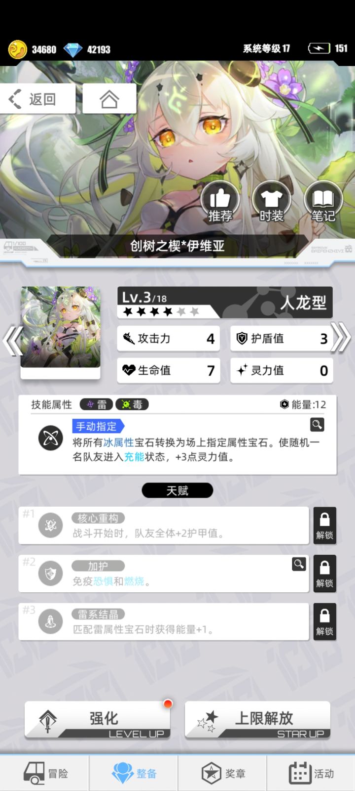 硕鼠(蚀)【毒冰】三号位 雷宝石群体充能 消除因阵容不需要而过多的光宝石转成雷宝石给一、二号位充能,一号位死亡时召唤硕鼠(电)充当一次性前排