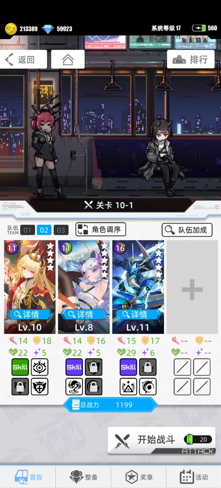 打有超聚核武装(图二中敌方三号位)的阵容时尽量让七七吞灭敌方两个角色提高攻击力,将硕鼠(蚀)换成超聚核武装来削弱它的护甲血量(要用魔法打败魔法),可以将七七与子夜更换位置或者恐惧击杀对面七七后卖掉一号位的子夜,来让七七获得使用攻击宝石的一号位来与对面的超聚核武装进行好莱坞式对决。