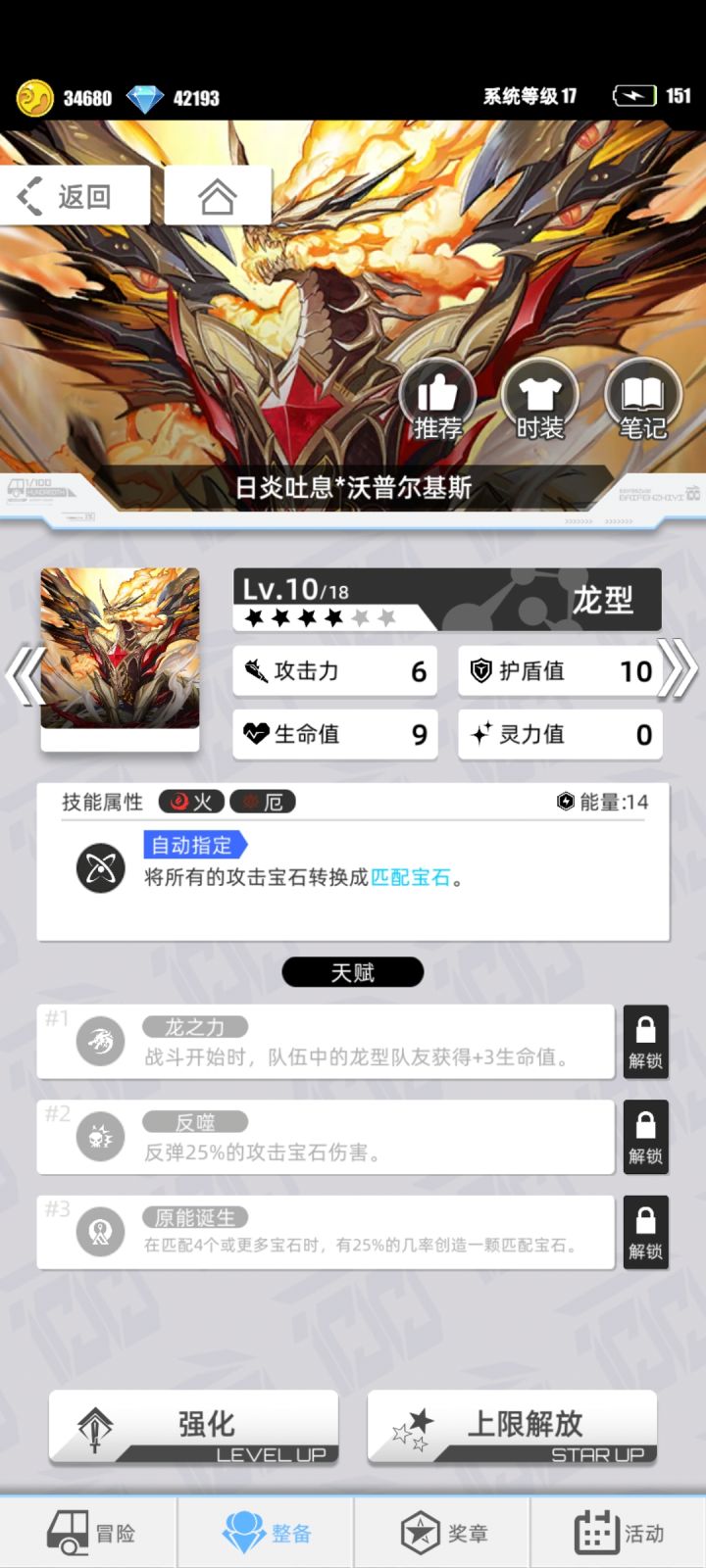 日炎吐息 沃普尔斯基【火厄】 四号位 匹配宝石群体充能 攻场上击宝石过多时,限制对面消除攻击宝石