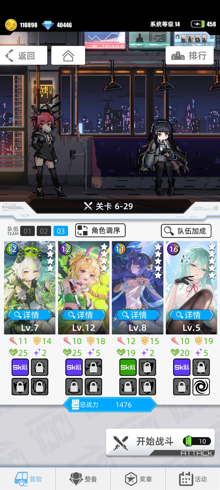 分享个伪无限[金币队],进可,挂机打到10-31(没再打了)。退可,2分钟10体力刷300金(有主角皮肤再+200)。缺金币的也可以试试。还有由于启动后清屏效率奇高,指令挂机大概率也可以完成。