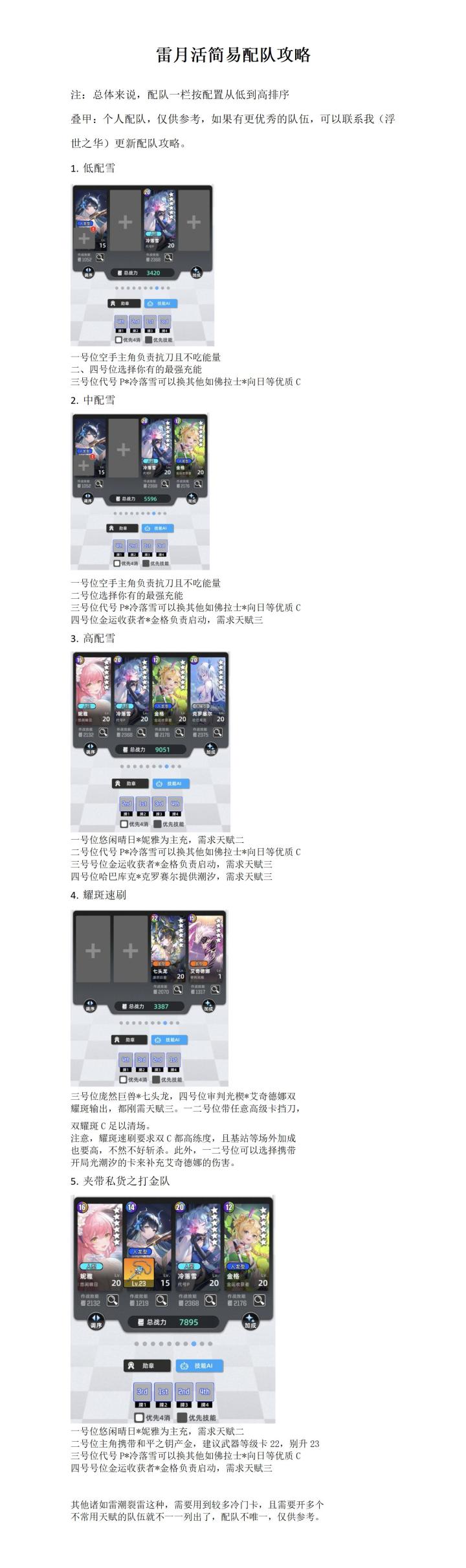按照轮换顺序,下午更新后就是雷月活了,先放一个简易配队攻略在这